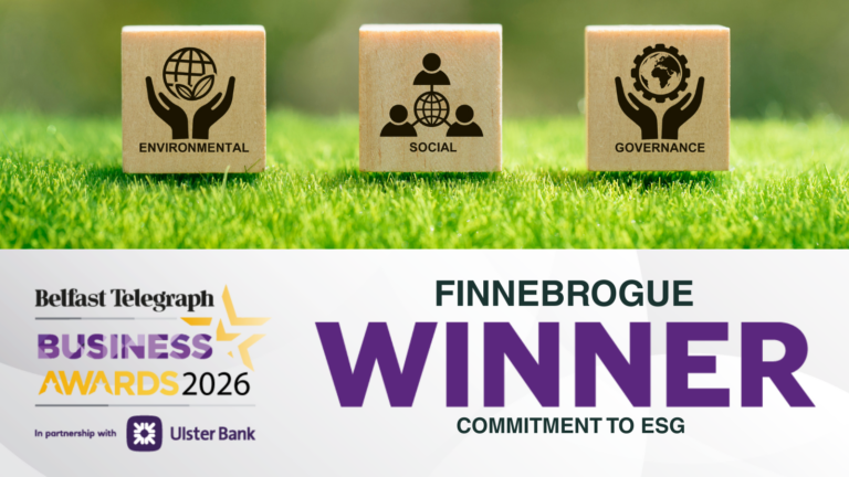 Finnebrogue was awarded Outstanding Commitment to ESG at the Belfast Telegraph Business Awards, standing out among 250 entrants for its fully integrated, measurable, and forward-thinking approach to environment, community and governance.