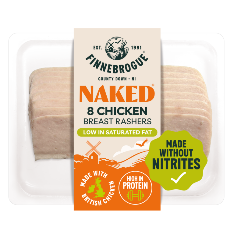 Finnebrogue is proud to announce the launch of its latest innovation: Naked Chicken Breast Rashers – a first-to-market product made without artificial additives or preservatives; and crafted from 100% British chicken breast.