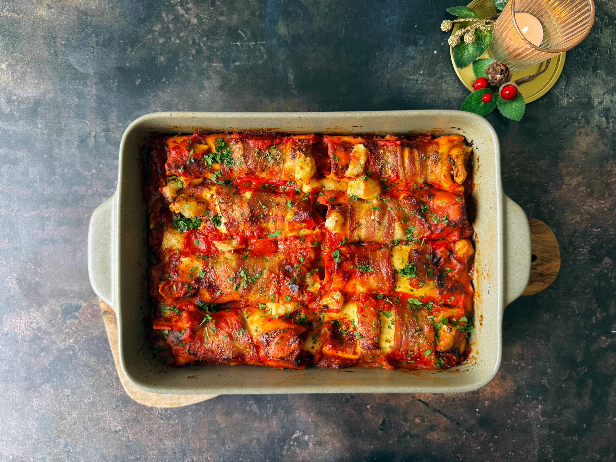 Festive Sausage & Bacon Cannelloni Bake